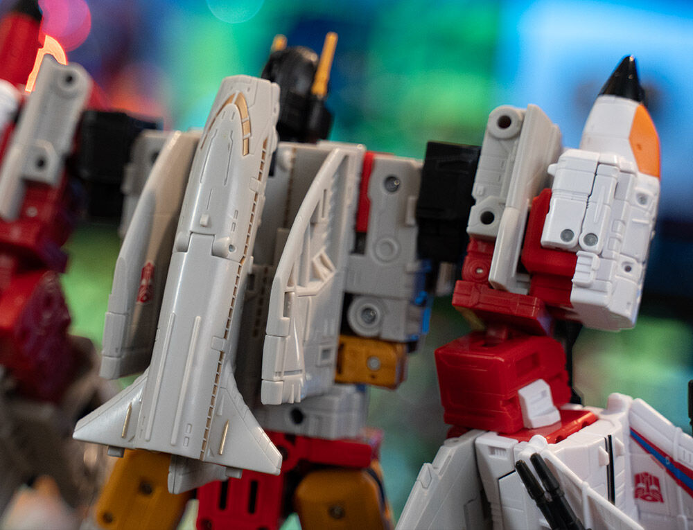 For the heroic Superion, Commander Class Silverbolt (released in May 2025) is surrounded by Deluxe Class Air Raid and Slingshot, which were released in April 2025, and by the upcoming Deluxe Class Firefight and Skydive, releasing in October 2025.