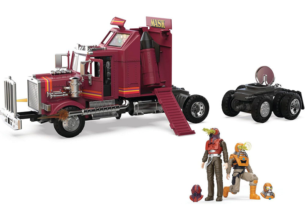 Known as the Mobile Armor Strike Kommand, the first release in the line is the M.A.S.K. Mobile Defense Unit aka Rhino. The iconic big rig truck is equipped with a mobile command center that includes a missile launcher, and comes with action figures of Matt Trakker and Bruce Sato.