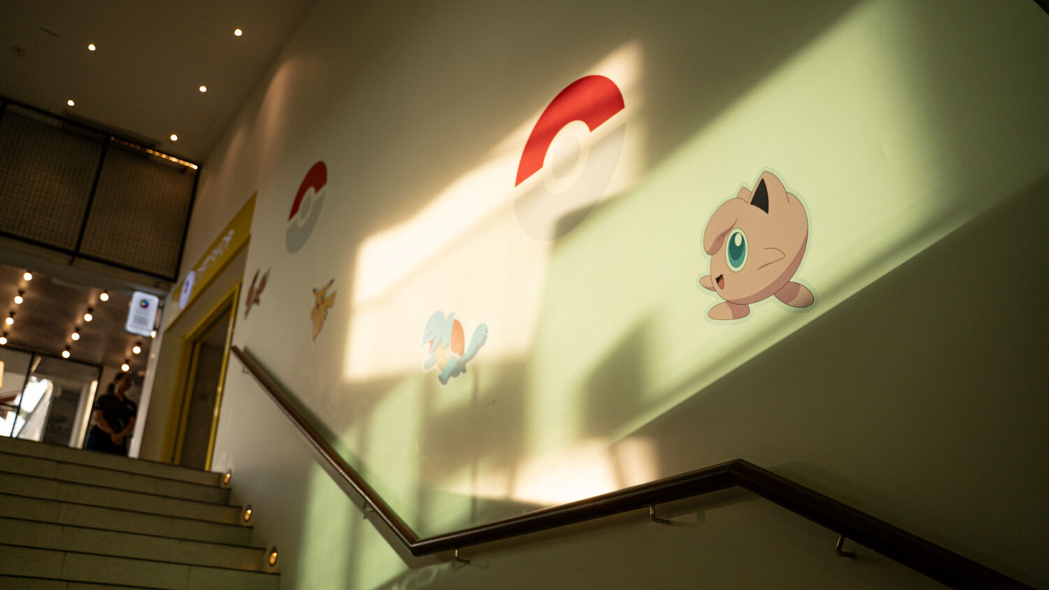 The excitement begins at the entrance, where a cheerful Pikachu and wall decor spotlighting Gengar, Charmander, Eevee, Jigglypuff, and, of course, the beloved yellow mouse, greet visitors. Along the stairway leading to the merchandise store and the station are decals of various critters, followed by photo spots in the open area.