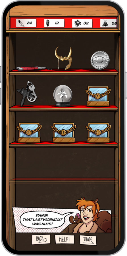 Rewards provide another reason to keep going. Every workout earns in-game supplies, which can be exchanged for trophies displayed in a virtual Trophy Cabinet. Squirrel Girl serves as the in-app guide to these achievements, making progression feel even more interactive.