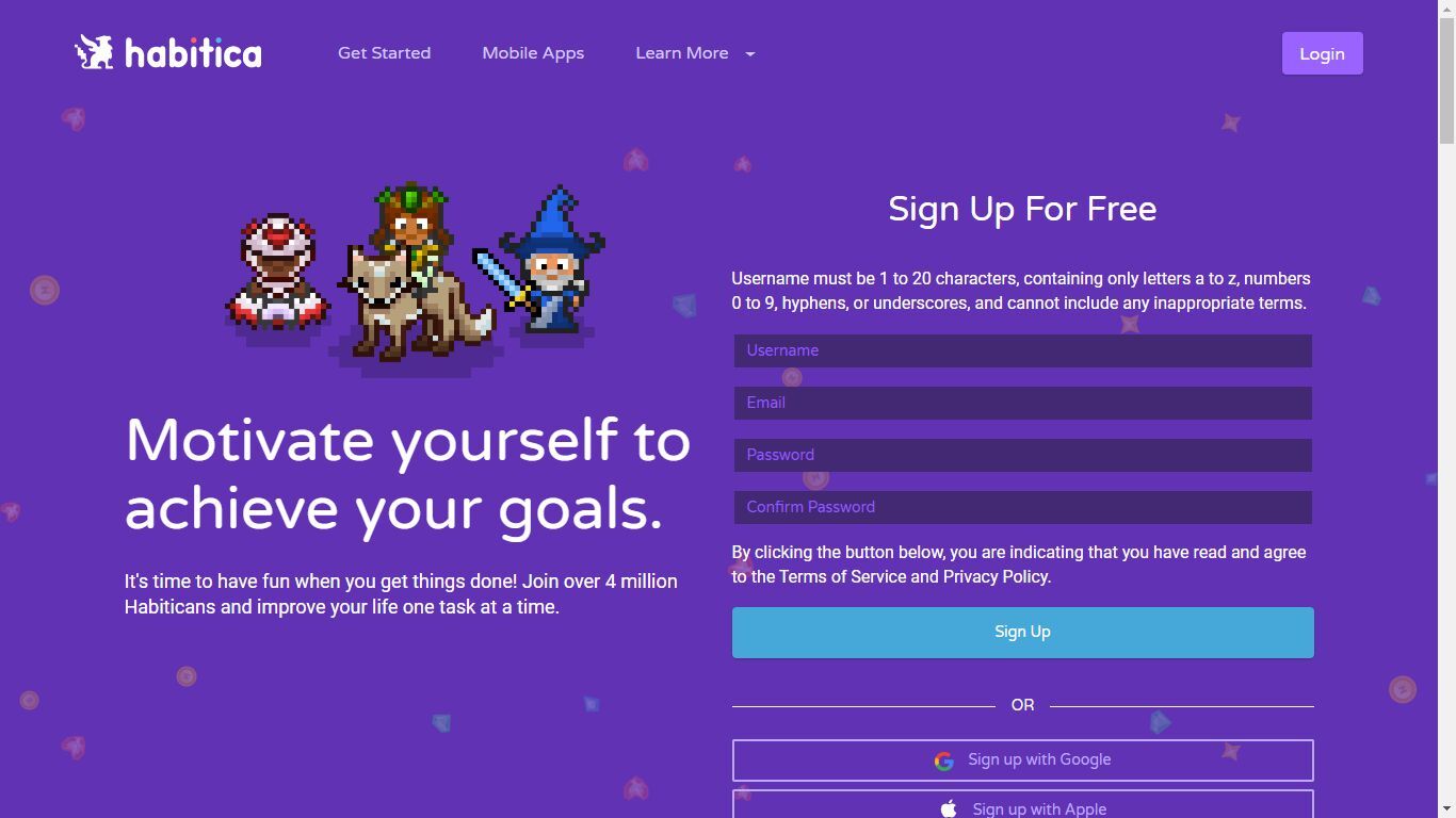 Habitica is available on both the Apple App Store and Google Play Store for free, with in-game purchases available. More information about Habitica can be found on the website.