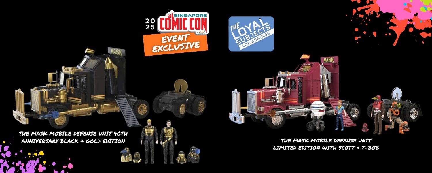 Talk about a blast from the past, as The Loyal Subjects is celebrating an iconic toyline from the mid-1980s with two event-exclusive M.A.S.K. figures, the MASK Mobile Defense Unit Limited Edition with Scott & T-Bob, and the MASK Mobile Defense Unit 40th Anniversary Black & Gold Edition. Outfitted with the toyline’s iconic vehicel-weaponsing gimmick, there’s no better way to relive your childhood battles with V.E.N.O.M., or introduce your kids to the legacy of M.A.S.K.
