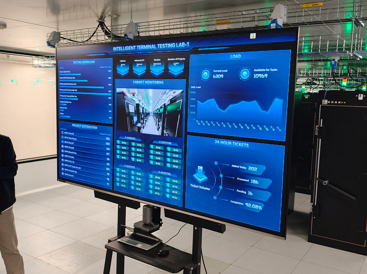 The Intelligent Terminal Testing Lab is the industry’s largest software testing facility, spanning over 2,000 square metres and capable of testing tens of thousands of devices simultaneously. Operating 24/7 with highly automated systems, requiring minimal human oversight. The lab rigorously verifies all code and applications before release, validating nearly one million lines of code and testing over 10,000 third-party apps monthly to ensure stability, security, and compatibility across devices and system versions.