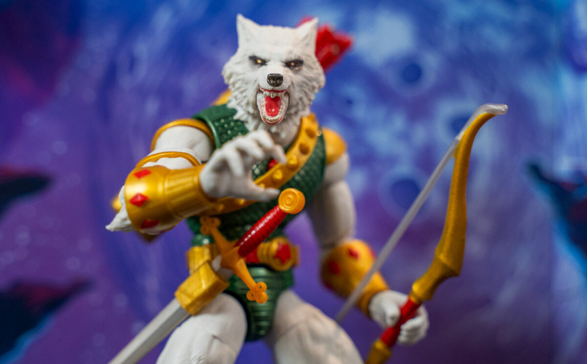 His discovery of the mystical Godstone, an other-dimensional ruby on the moon turned him into the Man-Wolf and the figure comes with over 20 points of articulation and six accessories – two alternate hands, the sacred sword of Stargod, a bow, a loose arrow, and a quiver of arrows.