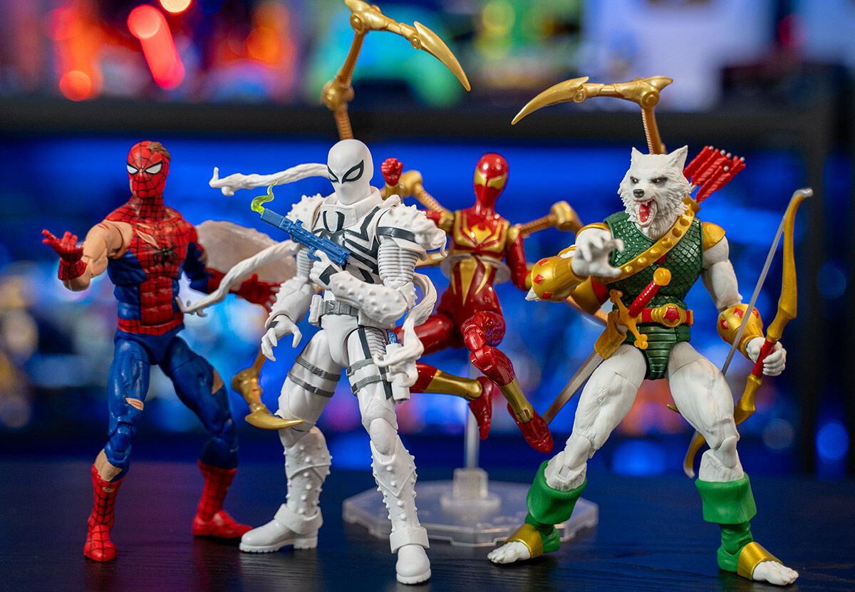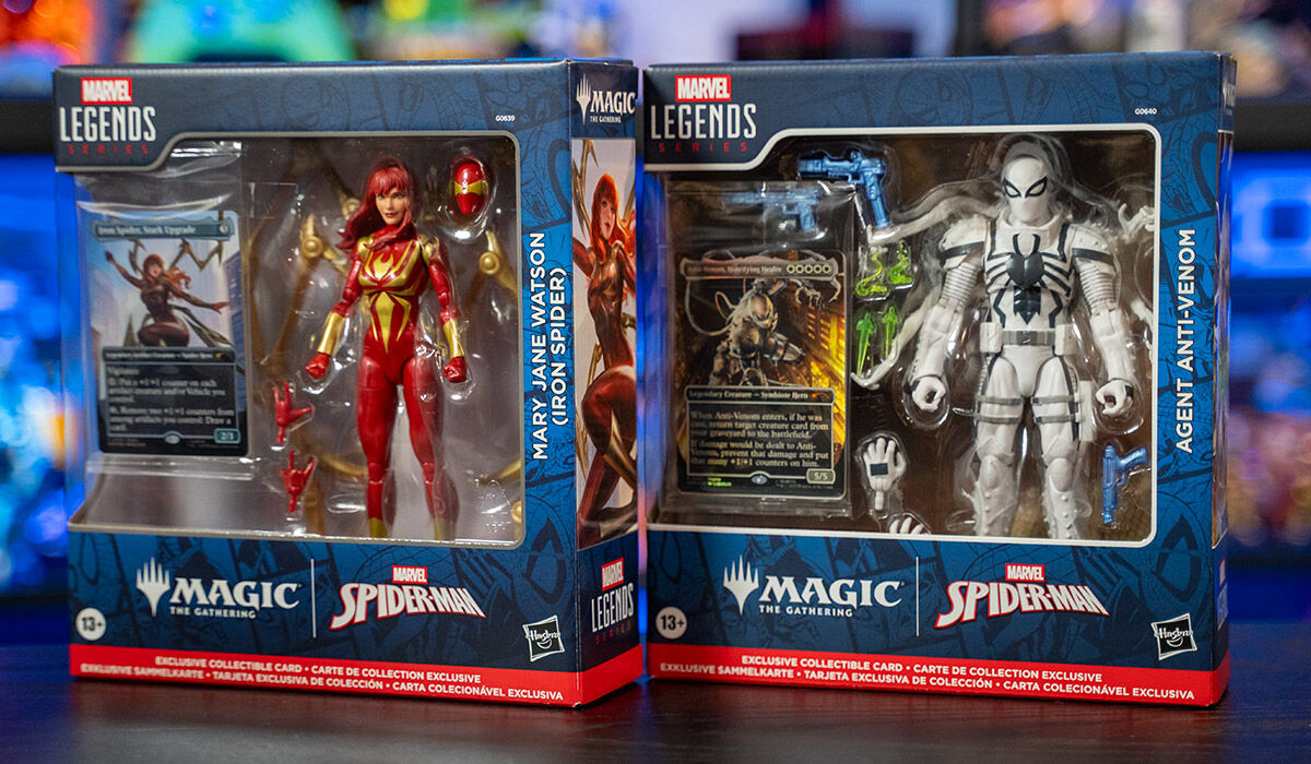 The first wave of figures that embrace storytelling and play with a series of exclusive promo cards comprises Battle-Damaged Spider-Man, Mary Jane Watson (Iron Spider), Anti-Venom, and Man-Wolf. Packed with each of these Marvel Legends Figures is a traditional foil borderless Magic: The Gathering promo card that has artwork that matches the design of the Marvel Legends Figure.