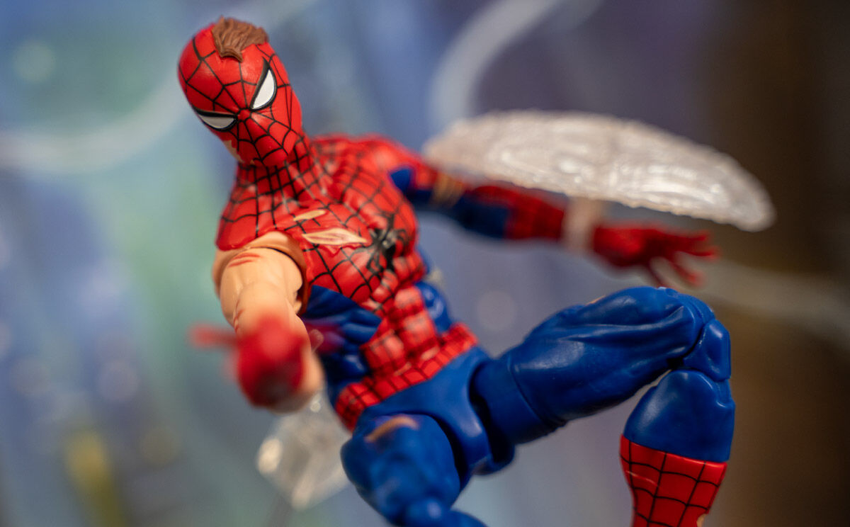 The figure comes with over 20 points of articulation and seven accessories – an unmasked head sculpt, two ‘thwip’ web-shooting hands, two wall-crawling hands, web line, and web shield.