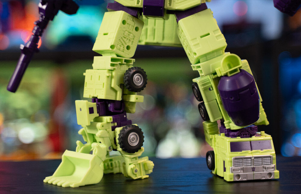 His arms and legs also have greater mobility, with simple effective additions, including articulated fingers, as well as legs that can spread, allowing for greater stability, to the point where even his ankles can also tilt inwards, for Devastator to rock any pose possible in your display cabinet.