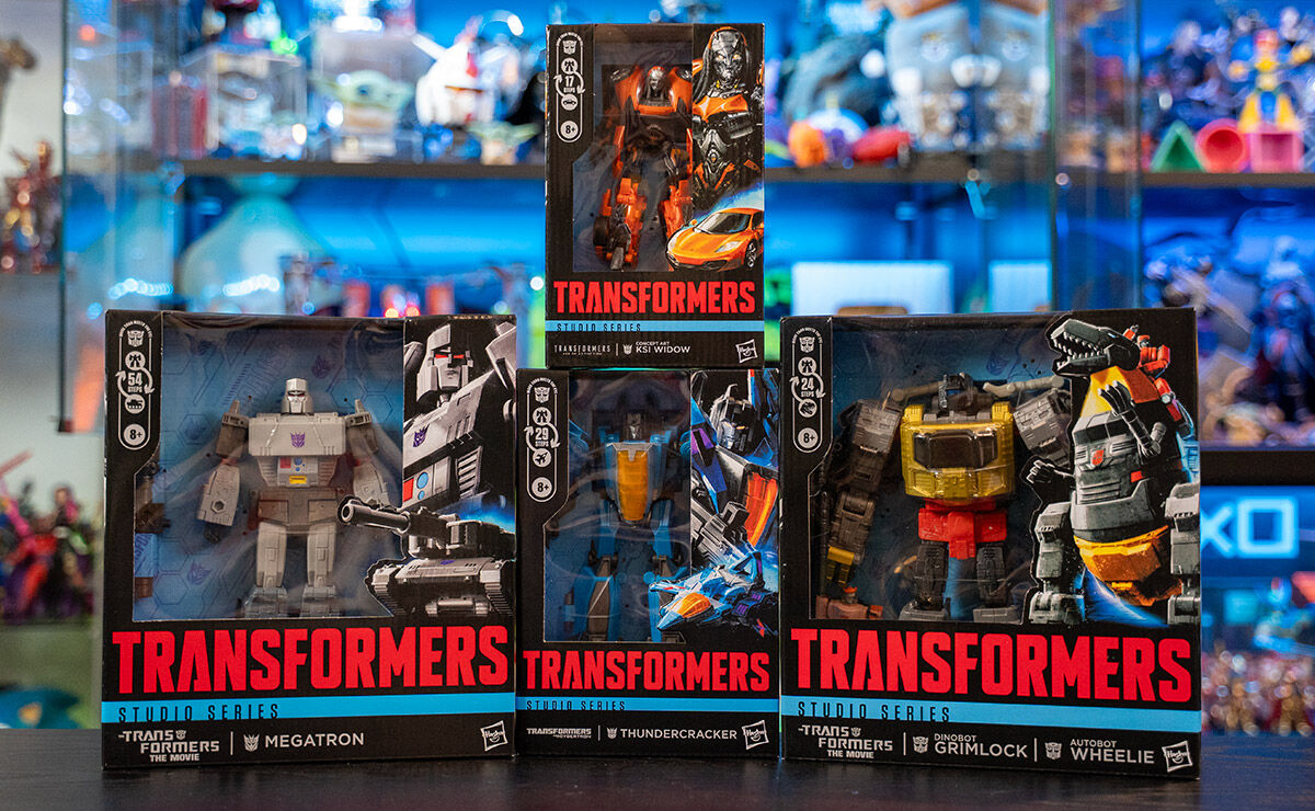 To round up the rest of the latest Studio Series releases in recent months, we have Thundercracker from the video game Transformers: War for Cybertron, Megatron and Grimlock + Wheelie from Transformers: The Movie, and KSI Widow, which was a concept art for Michael Bay’s Transformers: Age of Extinction.