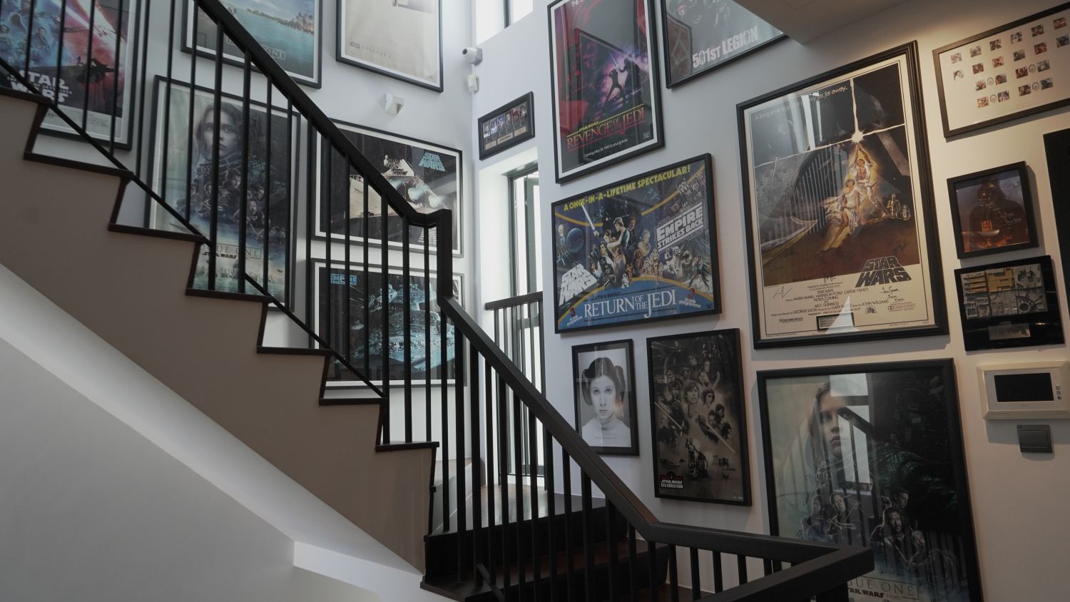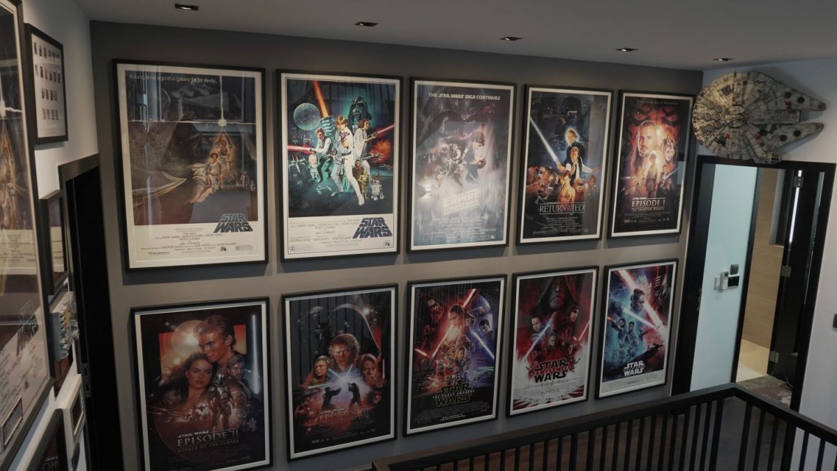 While preferring to create his collection from scratch, Jasper does not shy away from displaying posters up around his house as well, specifically on the third floor, and up the walls to the fourth. Upon reaching the third landing of the house, guests are faced with a wall filled with Star Wars movie posters arranged according to its release. The surrounding walls are poster-filled as well, some even having signatures from the actors of the franchise written on them.