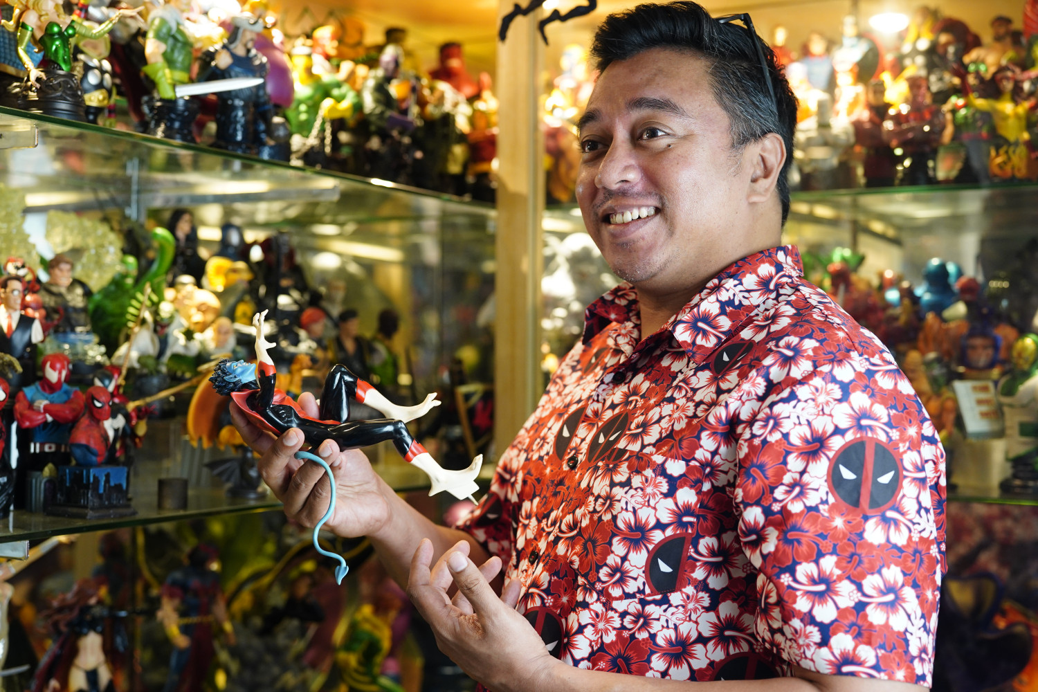 The 45-year-old Singaporean has been collecting superhero action figures, statues and busts for over 30 years, and has managed to display his collection in spectacular fashion in what he fondly calls his “superhero man-cave”.